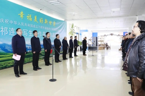 12月18日上午,庆祝中华人民共和国成立75周年省政府文史馆祁连山写生创作书画作品通渭巡回展开展仪式举行。市委书记汪尚学出席。省政府文史馆党组书记、馆长王华存讲话并宣布展览开展。