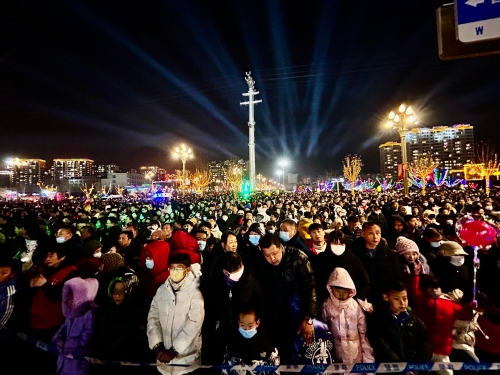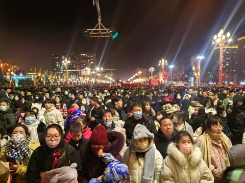 烟火起,照人间,举杯敬此年。绚丽缤纷的场面让现场观众雀跃不已,市民张铎激动地说:“我今晚带的老婆、孙子、儿媳妇来看烟花秀,今天晚上太热闹了,人太多了,场面特别的大,通渭这几年的发展我感觉太快了、太好了。”