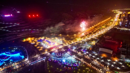 本次焰火表演晚会以“龙腾献瑞·华彩通渭”为主题,分为《奋斗历程》《美丽嬗变》《幸福家园》和《美好愿景》四个篇章,通过22分钟的烟花秀表演和23分钟的灯光音乐秀,彰显了全县广大干部群众团结一心、奋发向上,奋力推进全县经济社会高质量发展,追求新时代幸福美好生活的精神面貌。(记者: 田倩倩 张莉 陈雯 何春媛)