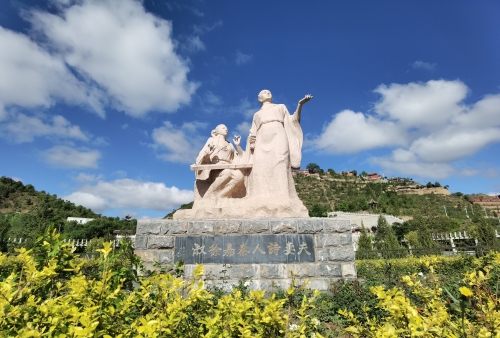 秦嘉徐淑诗词文化生态景区位于南山脚下,为国家AA级旅游景区。秦嘉、徐淑夫妇恩爱,善诗文,因其夫妇以诗文赠答,而成为文学史上的佳话,他们的诗作排列整齐,节奏婉转自然,文字流畅清新,纯朴深厚,他们的诗文代表了中国五言诗走向成熟的标志,在中国古代文学史上占据重要地位,也是中国历史上著名的夫妻诗人和爱情典范。为铭记他们二人在五言诗创作上的贡献和真挚爱情,挖掘通渭耕读、诗词、书画等文化,抓好生态建设,县委、县政府2010年启动 “秦嘉徐淑诗词生态景区” 建设。 秦嘉徐淑诗词文化生态景区位于县城南山,牛谷河南侧,总面积3800亩,一期占地面积150亩,二期占地面积3650亩。景区主要景观有鹊桥、牌坊门、主题雕塑、连理亭、比翼阁、秦嘉徐淑纪念馆、景观小桥、碑林墙、砚池水榭、草亭、弧形花架、四季亭、八景柱、耕读第、徐淑亭、明镜斋、瞻望台、诗情堂、津乡亭、上缘墩、平襄驿、汉阳驿、黄门廊、京师楼、咏榭亭、“鸳鸯湖---比目池”、同心桥和园林景观绿化等30余处。近年来建成游客接待中心1处、生态停车场2处、生态健身场所和儿童健身娱乐场所各1处。改扩建和绿化道路6公里,建成健身智能步道5.2公里。景区范围内有 “通渭八景亭”等人文景观建筑2694.6平方米,林地面积2500亩。景区建设以南屏山、清凉山面山绿化为生态环境大背景,以秦嘉徐淑的历史事迹及其诗文作品为文化主线,在建设中把诗词书法和园林建筑有机结合起来,同时将景区内的景点与科普教育、红色旅游基地建设相结合,突出当地特有的地域风情,为广大市民和游客提供一个能够与自然和谐相处、富有文化气息的休闲娱乐场所。景区生态良好、环境优美,空气质量达到国家一级标准和一类标准、噪音指标达到国家一级标准和一类标准、地表水质量达到国标规定。景区游览线路顺畅,游客能全方位、多角度了解景区自然、生态、诗词、文化、娱乐及爱情体验等景区风景风情。