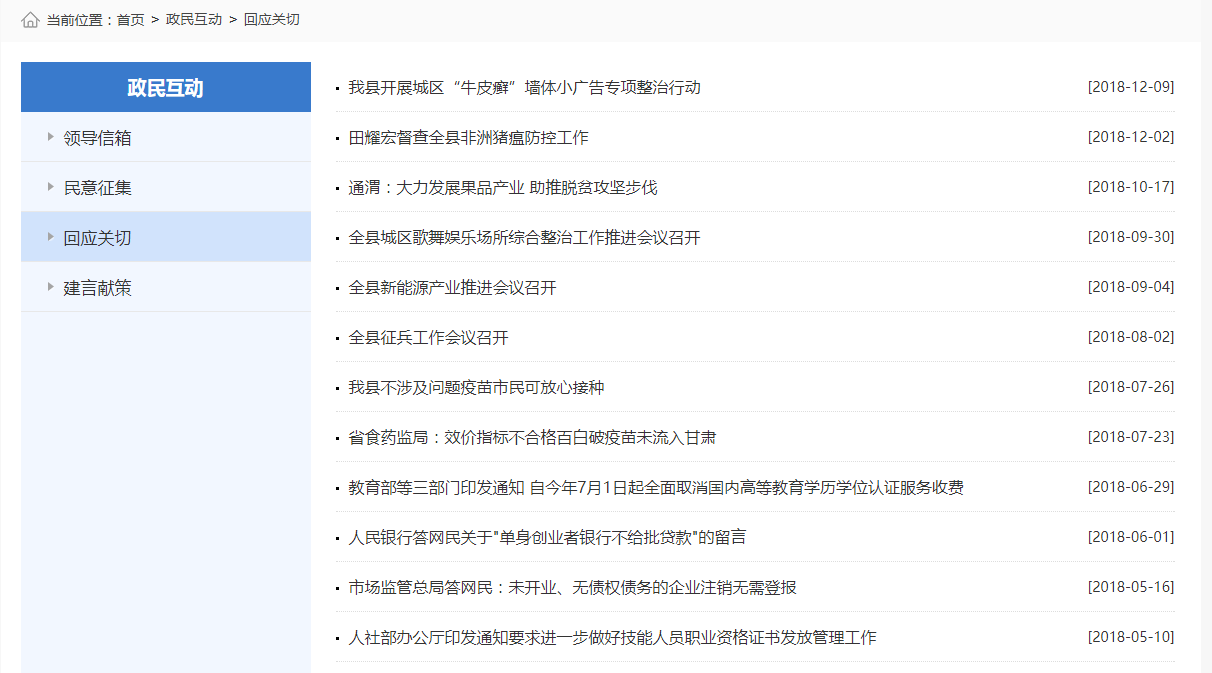 根据《中华人民共和国政府信息公开条例》(以下简称《条例》)的规定,现公布《通渭县人民政府2018年政务公开工作年度报告》。报告所列数据统计期限自2018年1月1日起至12月31日止。报告电子版可在通渭县人民政府门户网“信息公开”专栏下载,如有疑问,请与通渭县人民政府办公室联系,电话:0932-5552586,邮箱:twzfb@163.com。 一、概述 2018年度,通渭县认真贯彻落实《中华人民共和国政府信息公开条例》、国务院办公厅关于印发《2018年政务公开工作要点的通知》(国办发〔2018〕23号)、甘肃省人民政府办公厅关于印发《甘肃省2018年政务公开工作要点》(甘政办发〔2018〕83号)、定西市人民政府办公室关于印发《定西市2018年政务公开工作要点》(定政办发〔2018〕94号)文件精神,紧紧围绕人民群众关切关注,全面推进决策、执行、管理、服务、结果公开(以下简称“五公开”),不断加大政务信息发布、政策解读、舆情回应力度,扩大公众参与,增强公开实效,助力深化改革、经济发展、民生改善和政府建设,确保政务公开工作有力有序推进。 (二)完善制度体系。制定了《通渭县2018年政务公开工作要点》,进一步明确了政务公开内容、公开形式和公开时限,促进政务公开工作规范化、制度化运行。组织各重点领域公开牵头部门对工作要点各项任务逐项分解,印发了关于分解2018年政务公开工作重点任务的通知,确保每项工作可量化、可监督、可考核,为政务公开的准确性、权威性、完整性和时效性提供制度保障。将“五公开”要求落实到公文办理程序中,确保政府公文“应公开尽公开”。各乡镇、各部门将政务公开的各项措施和要求融入到本乡镇、本部门总体工作中部署,相继制定了本乡镇、本部门细化方案,将职责任务细化实化到每个节点,落实到每个单位(科室)和个人身上。 (三)拓宽信息公开渠道。深化信息公开理念,进一步增强工作的主动性,完成从“要我公开”到“我要公开”的转变,做到“应公开、尽公开,应上网、尽上网”。因地制宜,构建多样化的公开渠道,各乡镇、各部门充分利用微信公众号、广播、电视、便民服务大厅、新闻媒体、热线电话、短信服务平台、电子显示屏、展板、宣传手册、办事指南、公告栏、触摸屏等多种形式加强宣传,最大程度地提高了政府信息公开工作的透明度,满足人民群众获取和利用政府信息的需求。 (四)做好依申请公开工作。坚持公正、公平、便民、分级受理和严格依法的原则,严格落实依申请公开规范办理机制,在依申请办理中注重与申请人的直接沟通,通过聆听需求、解疑释惑,获取社会公众对依申请公开答复的认可和支持。强化对各乡镇和各部门依申请公开工作的指导,推进全县依申请公开工作依法规范水平不断提高。2018年共收到有效依申请公开3件。所有依申请公开办件均未收费。 二、主动公开政府信息情况 通过政府网站、广播电视、信息专栏等方式公开政府信息12376条,其中政府网站公开9285条、通过电视广播和信息专栏公开医疗保险、低保政策、保障住房政策等各类惠农政策落实情况信息3091条。 县政府门户网站共收到网民留言385条,已办结385条、办结率100%;县电子民生平台共受理各类民生事项4155件次,办结率为99.04%、按时办结率为97.75%,满意率为64.81%、双满意率为46.33%。 此外,结合工作实际,制定量化考核标准,明确政务信息报送责任单位,规定报送任务和报送要点,全年报送市政府信息521条。积极联系配合新版网站开发公司在12月14日完成通渭县人民政府新版网站上线运行工作,并积极检查新版网站各项栏目功能,查漏补缺完善新版网站信息,调整版面格式,细化栏目设置,改正各项错误,导入相关网站信息数据,消除空白栏目,保障了新版网站的健康运行。 三、2018年政务公开工作要点落实情况 (一)着力加强公开解读回应工作。坚持把公开透明作为政府工作的基本要求,坚持以公开为常态、不公开为例外,政府全体会议和常务会议讨论决定的事项、政府及其部门制定的政策,除依法需要保密的外都及时公开,以公开促进依法行政和政策落地见效,充分保障人民群众的知情权。抓好财政预决算、重大建设项目批准和实施、公共资源配置、社会公益事业建设等领域政府信息公开制度的贯彻落实,按照规定在3月15日前在通渭县人民政府门户网财务预决算和“三公”经费专栏中公开全县18个乡镇、53个部门的2018年部门预算及“三公”经费安排情况说明71条,在7月15日前公开全县18个乡镇、59个部门的2017年部门决算77条。重视推动政策解读工作,全年重点围绕防范化解重大风险、精准脱贫、污染防治三大攻坚战等群众关心的政策措施发布政策解读21条,县委书记和县长各解读相关政策3条。同时,围绕社会重大关切加强舆情回应,增强舆情风险防控意识,密切监测收集苗头性舆情,特别是涉及经济社会重大政策、影响党和政府公信力、冲击道德底线等方面的政务舆情,做到及时预警、科学研判、妥善处置、有效回应,全年发布民意征求公告15条,回应重大关切事项8条。加强依申请公开受理渠道建设,规范了依申请公开答复工作,严格按照法定时限答复,答复形式严谨规范。 (二)着力提升政务服务工作实效。推进网上办事服务公开,推动更多事项在政务服务网上办理,推动办事材料目录化、标准化,让群众办事更明白、更便捷。