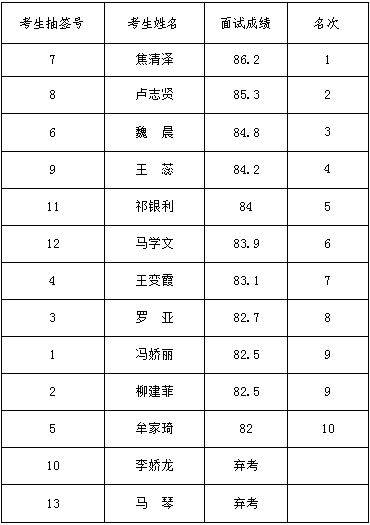 根据《定西市引进“高精尖”人才公告》相关要求,定西市开发区建设发展领导小组办公室2022年引进“高精尖”人才面试考评工作于2022年11月10日上午进行,现将面试成绩公示如下,接受社会监督。 一、公示对象