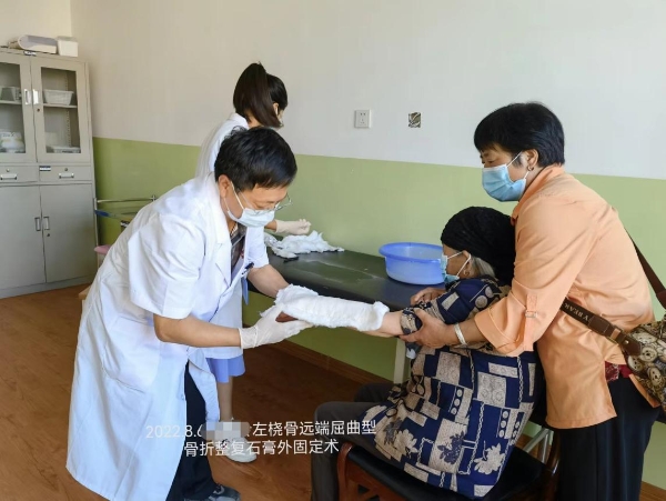 在骨科,大家见到了来自同济大学附属东方医院胶州医院中医科、主任医师王奕来。从医三十多年的他,一直从事中医骨伤临床工作,他说,自己来通渭县人民医院帮扶年限是一年,虽然时间短暂,但他想在这一年时间里贡献自己的所有力量。王奕来到通渭县人民医院后,积极投入到查房、坐诊、会诊、教学及手术等工作中,至目前已会诊疑难病10余例,完成手术12台,并开展胸12椎爆裂骨折切开复位钉棒系统内固定术、左肱骨髁上骨折闭合整复石膏外固定术及各类四肢骨折闭合整复石膏外固定术20余例,组织开展骨科专业学术讲座,为骨科全体医护人员进行疑难病例的分享与讨论,共同探讨骨科新技术和新理念的运用,努力为来院患者解决实际问题。