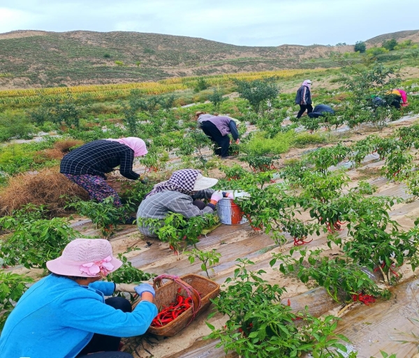 金秋九月,走进通渭县李家店乡辣椒种植示范基地,空气中弥漫着辣椒的辛香,一根根火红的辣椒长势喜人。农户们正忙着在地里采摘辣椒,一派繁忙的丰收景象。