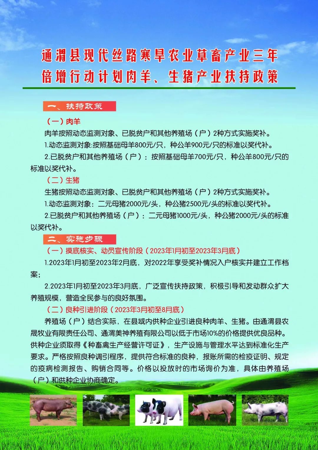 2023年通渭县肉羊、生猪产业扶持政策
