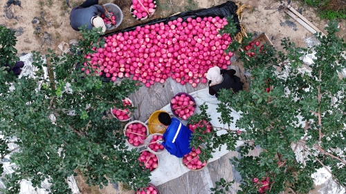 通渭县融媒体中心记者 刘菲:“从零星种植到规模种植,陇川镇的苹果种植已经有四十余年的历史了,经过160天左右的生长期,苹果迎来了采收季,现在果农们正在进行采摘、装箱、打包,这些苹果将被运往全国各地。”