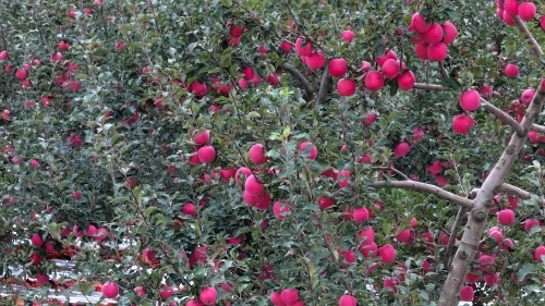 金秋时节,路边野菊花黄灿灿开成一片,枝头红彤彤的苹果挂满果园,果农们忙着采摘、装箱、封口、装车,一派丰收的景象。果农伏润叶家的苹果长在树上的时候,已经被重庆的客商订购,这几天正忙着采收。 通渭县陇川镇果农 伏润叶:“我种了15亩苹果,今年家家的苹果都是红彤彤的,又大又红。” 据郭家村村党支部书记郭振军介绍,他们种植的是中短枝型富士品种苹果,施的肥料都是有机肥,苹果色度很好,果皮非常薄,果子大,今年最大的苹果单果重一斤二两以上了,收入最多的一家有20多万元。
