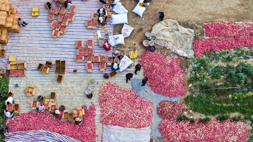 陇川镇副镇长刘建斌介绍说,以前村上没有自己的库房,果农只能把苹果储存在临近的静宁县,路途遥远,无形中增加了果农成本,保鲜库的建成,使果农选择余地变大,收益更广。 通渭县陇川镇副镇长 刘建斌:“陇川镇寨子村果品交易市场建成于2023年,现有冷库3间,果品周转库房6间,库容量能达到400万斤。果子刚下树的时候,来的外地客商比较多,价格会压的比较低,如果果农认为价格太低,可以把苹果储存到库里,等到价格上涨后再出售,这样就有效避免了‘果贱伤农’的问题。”