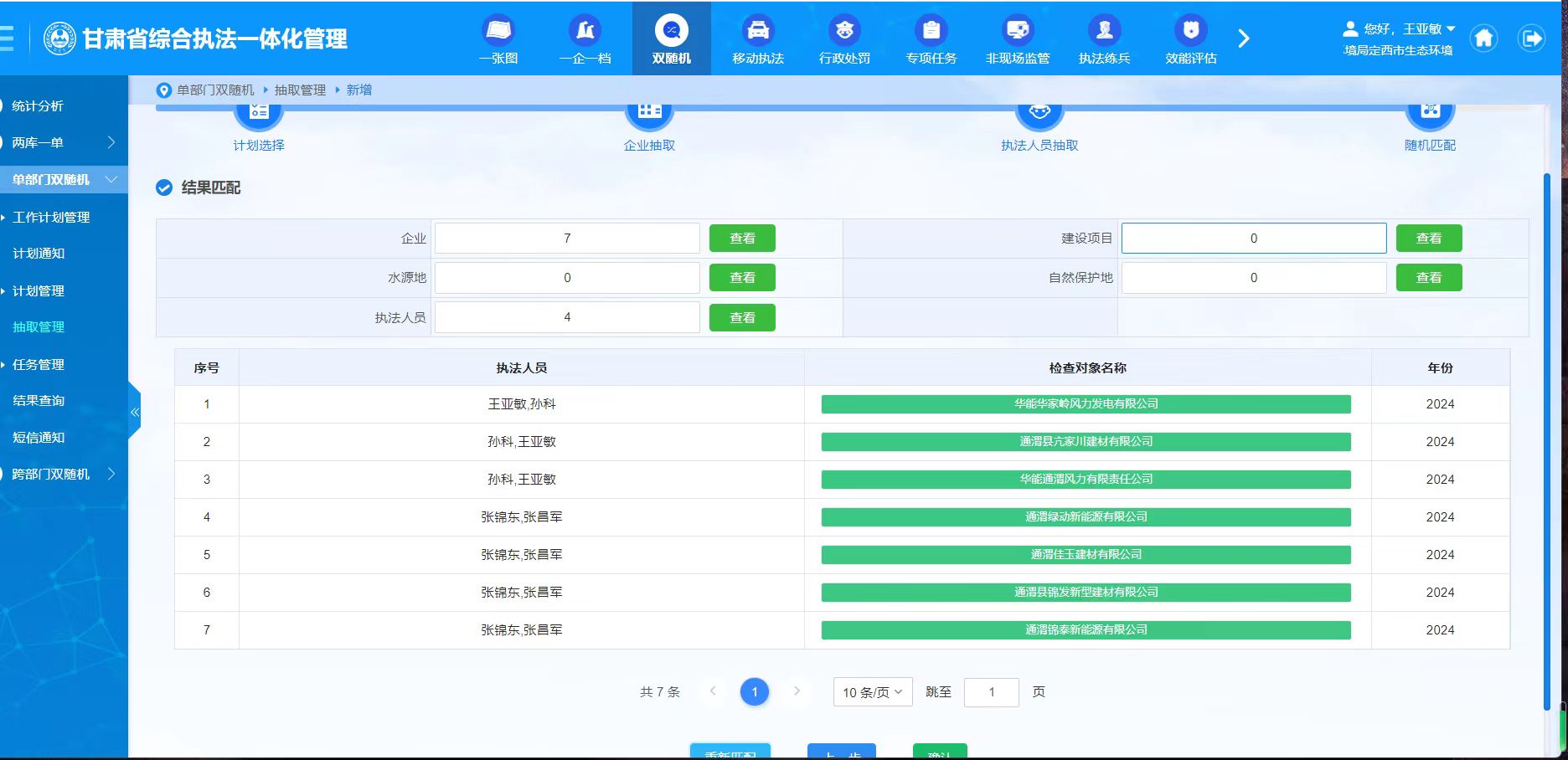 定西市生态环境局通渭分局6月份双随机抽取结果公示