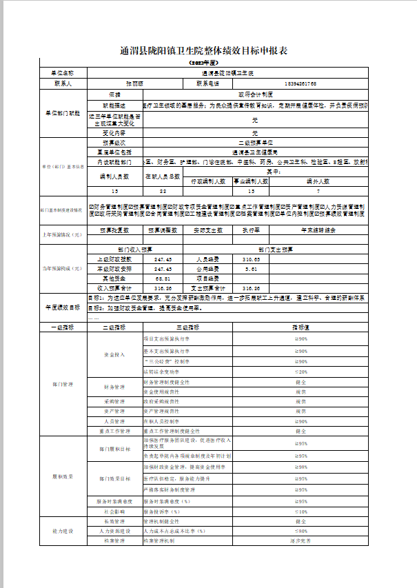 通渭县陇阳镇卫生院 2023年部门整体支出绩效评价报告 |