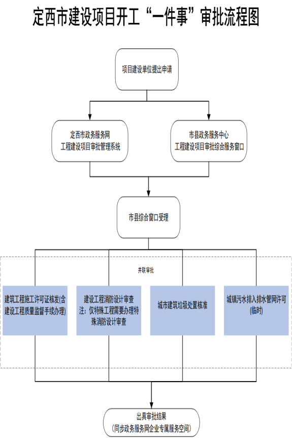 联 办 部 门:通渭县住房和城乡建设局 服 务 对 象:企业、个人 法定办结时限:77个工作日 承诺办结时限:14个工作日 咨询投诉方式:(咨询电话:0932-5559903;投诉电话:0932-5552841) 系统技术服务:13919170884 网上办理网址:https://zwfw.gansu.gov.cn/ 登陆甘肃政务服务网→高效办成一件事重点服务专区(详见下面操作流程) 线下办理地址:通渭县陇阳路2号政务中心二楼住房和城乡建设局57号建设项目开工“一件事”窗口 办 理 时 间:工作日上午08:30-12:00,下午14:30-18:00;法定节假日期间甘肃政务服务网可正常访问、注册和申报业务,网上受理审批工作将在节后正常进行 集成办理事项: 1.建筑工程施工许可证核发2.建设工程质量监督手续办理3.建设工程消防设计审查 4.城市建筑垃圾处置核准5.城镇污水排入污水管网许可(临时) 受理条件: 一、申请领取施工许可证,应当具备下列条件: (一)已经办理该建筑工程用地批准手续; (二)依法应当办理建设工程规划许可证的,已经取得建设工程规划许可证; (三)需要拆迁的,其拆迁进度符合施工要求; (四)已经确定建筑施工企业; (五)有满足施工需要的资金安排、施工图纸及技术资料; (六)有保证工程质量和安全的具体措施。 二、办理质量监督的材料与施工许可申请材料同步提交,与办理施工许可证相同的材料可相互共享,不再重复提交。在施工许可申请材料的基础上,还应提交以下资料: (一)工程总承包、监理合同,依法通过招标方式发包项目的中标通知书; (二)工程总承包单位主要管理人员配备表(项目经理、项目质量负责人),施工单位项目主要管理人员配备表(项目经理、技术负责人、质量负责人),监理单位项目监理机构主要人员配备表(总监、总监代表、监理工程师、见证人员等),以及上述人员的资格证书复印件; (三)工程质量责任主体法定代表人对项目负责人的授权委托书,项目负责人签署的工程质量终身责任承诺书; (四)施工组织设计。其中第(三)、(四)项材料申请人可选择在事后规定期限内以补充的方式提交并对期限予以承诺,但最迟应在工程施工图设计内容正式施工前提供,且不得超过3个月。 三、消防设计审查验收主管部门收到建设单位提交的特殊建设工程消防设计审查申请后,符合下列条件的,应当予以受理;不符合其中任意一项的,消防设计审查验收主管部门应当一次性告知需要补正的全部内容: (一)特殊建设工程消防设计审查申请表信息齐全、完整; (二)消防设计文件内容齐全、完整(具有《建设工程消防设计审查验收管理暂行规定》第十七条情形之一的特殊建设工程,提交的特殊消防设计技术资料内容齐全、完整); (三)依法需要办理建设工程规划许可的,已提交建设工程规划许可文件; (四)依法需要批准的临时性建筑,已提交批准文件。 四、建设单位、施工单位或者建筑垃圾运输单位申请城市建筑垃圾处置核准,需具备以下条件: (一)提交书面申请(包括建筑垃圾运输的时间、路线和处置地点名称、施工单位与运输单位签订的合同、建筑垃圾消纳场的土地用途证明); (二)有消纳场的场地平面图、进场路线图、具有相应的摊铺、碾压、除尘、照明等机械和设备,有排水、消防等设施,有健全的环境卫生和安全管理制度并得到有效执行; (三)具有建筑垃圾分类处置的方案和对废混凝土、金属、木材等回收利用的方案; (四)具有合法的道路运输经营许可证、车辆行驶证; (五)具有健全的运输车辆运营、安全、质量、保养、行政管理制度并得到有效执行; (六)运输车辆具备全密闭运输机械装置或密闭苫盖装置、安装行驶及装卸记录仪和相应的建筑垃圾分类运输设备。 五、排水户申请领取污水排入排水管网许可证应当具备下列条件: (一)排放口的设置符合城镇排水与污水处理规划的要求; (二)按照国家有关规定建设相应的预处理设施和水质、水量检测设施; (三)排放的污水符合国家或者地方规定的有关排放标准; (四)法律、法规规定的其他条件。 网办(线上)操作流程 第一步:登录“甘肃政务服务网”,选择区域“定西市” 第二步:点击“高效办成一件事”服务专区 第三步:选择高效办成一件事主题列表,选择“建设项目开工”,点击立即办理,选择定西市 第四步:进入定西市工程建设项目审批管理系统-建设项目开工“一件事”专区 第五步:点击“立即办理”,选择项目信息,核对信息是否正确(项目名称不可修改),点击‘下一步’填写选择事项填写表单。 第六步:表单信息填完成后,点击导出表单,核对导出表单信息是否正确,确认无误后盖章点击“上传申请表”上传,点击下一步。 第七步:上传申请材料,材料上传后点击保存,发送即可。