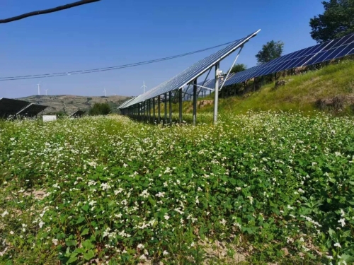 时下,走进通渭县陇阳镇庆阳村阳山梁,一排排整齐的光伏板在阳光下闪耀着金属光泽。光伏板下,成片的荞麦花竞相绽放,长势喜人。这幅“板上发电、板下种粮”的和谐画卷,正是庆阳村探索“农光互补”新模式取得的可喜成果。