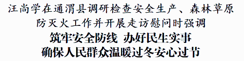 1月1日下午,市委书记汪尚学深入通渭县调研检查安全生产、森林草原防灭火工作并走访慰问全省就业创业工作先进个人、市劳动模范和困难党员,向他们致以节日的问候与美好祝福。他强调,要深入学习贯彻党的二十届四中全会精神,全面贯彻落实习近平总书记视察甘肃重要讲话重要指示精神,按照省委十四届九次全会、市委五届十二次全会暨市委经济工作会议部署要求,始终把人民群众的安危冷暖放在首位,以“时时放心不下”的责任感筑牢安全防线、办好民生实事,全力以赴防风险、保安全、护稳定、促发展,确保人民群众温暖过冬、安心过节。