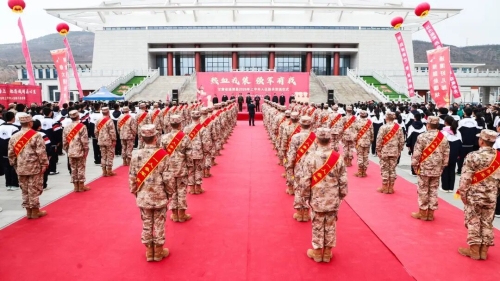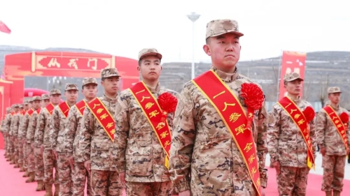 新兵代表发言时,言语间满是坚定与憧憬。“参军是我从小的梦想,青春有很多的样子,我选择穿着这身军装去保家卫国。”入伍新兵陈海斌的话语朴实而有力量,他承诺将在部队刻苦训练,努力成为一名合格的解放军战士。新兵常文博也难掩激动:“参军报国圆梦今朝,到部队后定当刻苦训练,练好本领,守护好祖国的边疆,为家乡争光。”