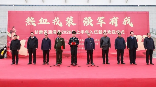 一身戎装赴使命,满腔热血护家国。3月16日下午,通渭县2026年上半年入伍新兵欢送仪式在县翰墨文化中心广场隆重举行,县人武部政委岳晨,副县长苟红红,县征兵领导小组成员单位负责同志与新兵及家长代表、专武干部齐聚一堂,为即将踏上军旅征程的青年们送行。
