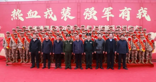 仪式在激昂雄壮的国歌声中拉开帷幕,旋律回荡在广场上空,激荡着每一位在场人员的爱国情怀。随后,县人武部相关负责人宣读了《通渭县2026年上半年新兵入伍命令》,宣告着这群朝气蓬勃的青年正式肩负起保家卫国的神圣使命。