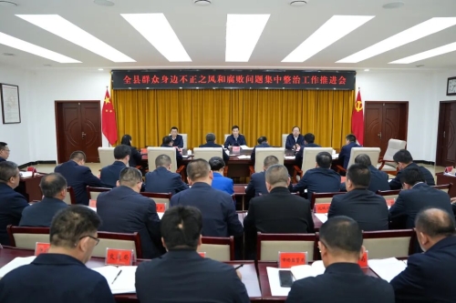 3月26日,全县群众身边不正之风和腐败问题集中整治工作推进会议召开,县委书记邵鹏出席会议并讲话。他强调,要深入学习贯彻习近平总书记关于深化整治群众身边不正之风和腐败问题的重要讲话重要指示批示精神,以决战决胜的姿态、舍我其谁的担当,持续向群众身边不正之风和腐败问题亮剑,以实打实的整治成效守护群众切身利益、厚植党的执政根基。