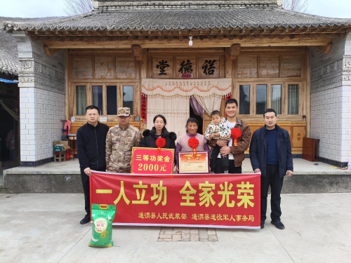 3月27日,通渭县人武部会同县退役军人事务局,前往常家河镇固河、胜义、高庄等村,为荣立三等功的现役军人家庭送去喜报和奖励金,与镇村干部共同见证军人荣誉,传递党和政府对军人军属的关怀与尊崇。